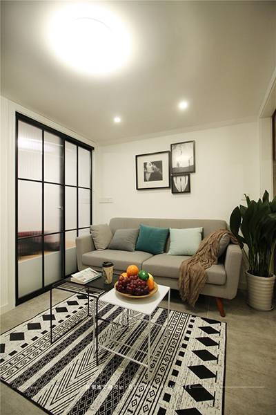 因为是小户型的房子,后期也需要招待朋友,设计师为了使整体空间感宽阔,在风格搭配上采用黑白灰为主的现代设计,细节装饰上选用暖色调进行提亮空间,打造一个舒适温馨的浪漫空间。